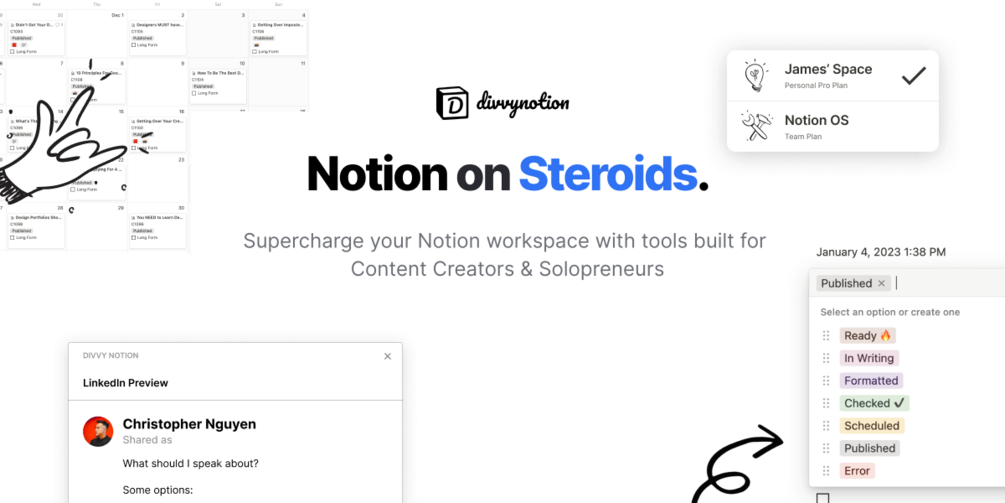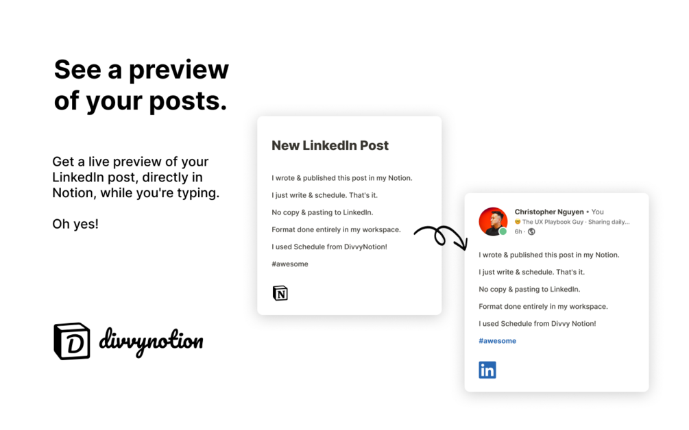 Divvy Schedule -- Write, plan, publish in Notion to LinkedIn (and Twitter soon!)